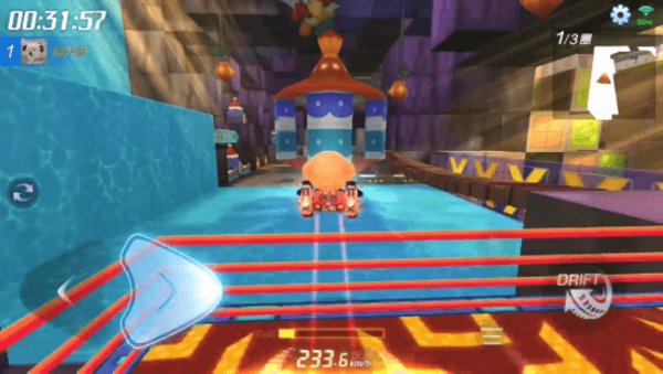 下图这里需要使用拖漂过弯方为最佳, 如果拖漂技巧使用不到位的话,则会撞墙甚至晕向,因此我们在使用拖漂后要及时拉回车头,保证车子稳定前行。