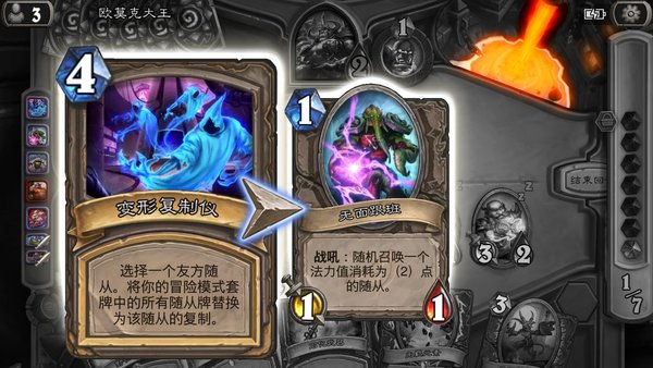 首先,前两关的时候可以不着急使用变形复制仪来洗牌,一是因为牌库牌总量就不是很多没必要洗,二是确实有的时候会被对面的344傻子踢死……(捂脸)萨满初始套牌随从强度也就是一般。