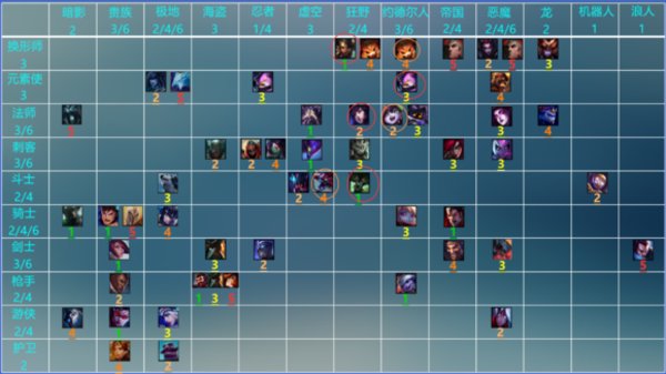 成型队伍:纳尔狼人豹女狐狸露露凯南大虫子蜘蛛(蜘蛛可换龙女或乌鸦)6人口战力成型, 7人口不升人口的打法还有8人口无敌队形