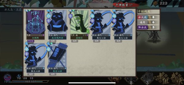 (PS套装尽量抽牌和回真气相关的各2套,这样打起来更舒服顺畅些,装备优先升级加真气的)