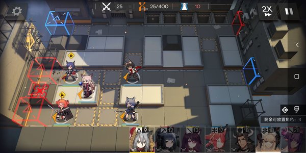 先是两个回复部署点干员,然后近卫放上,重装下,最后群法,然后奶妈在陈后面上一格向下拉(因为有整合移动的群体术士,然后前期基本成型