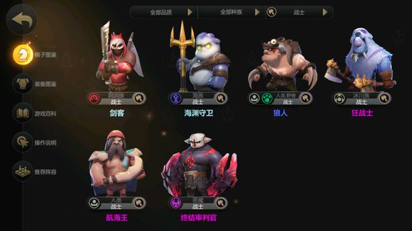 6,精英战,8人口成型,6战双野兽双海族:剑圣,大鱼,狼人,狂战,末日审判官,船长,利爪德,蛇女。没有任何一个1费战士。