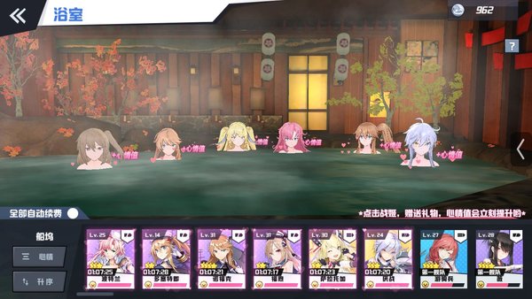 每次出击都会消耗心情2点这个可以直接看出击黄条,低于一半以上最好休息下(可以温泉可以宿舍)泡温泉最合适,但有个小技巧估计还有人没有发现,当你点击舰娘泡澡后心情满了,别直接点结束,而是应该把其她心情不好的直接划拉过去,就可以顶替该舰娘用剩下来的洗澡水,而不会浪费温泉币。