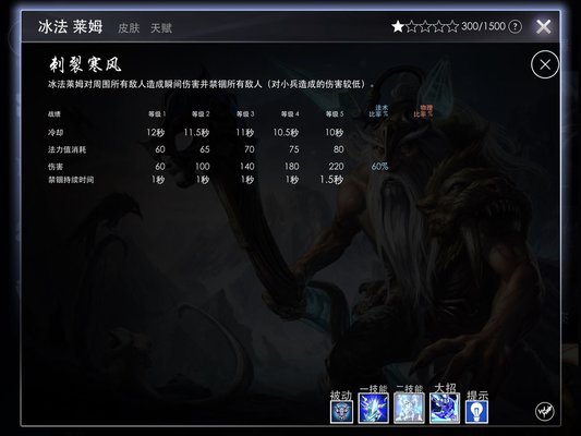 分析:你攻击的时候可以在四秒内对敌方英雄持续掉血,并且还可以让被攻击目标造成减速,并且在攻击的时候,莱姆自身还可以获得加强生命值,注意看被动的普通攻击法术加成-百分之180!这个可以算是非常之高的了。