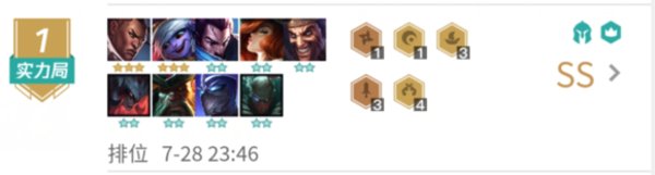 血量比较危险装备也不理想,上布隆和日女凑双护卫恰烂分,强度尚可,站位摆的好还是有机会吃鸡的,有机会升八可以上天使/亚索/猪女/大虫子补控制。
