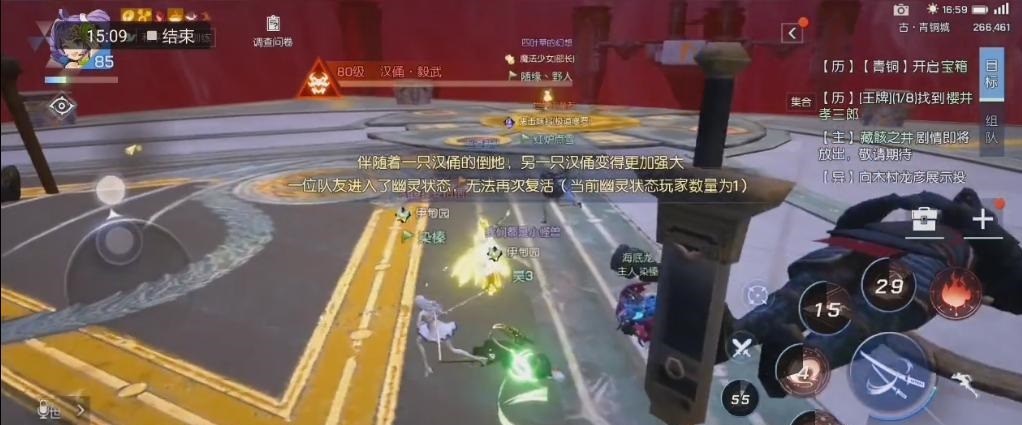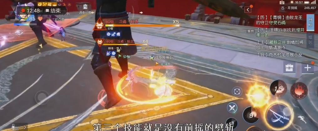 第四个技能就是大招了,赐名为大宝剑,伤害奇高,范围贼大,没提示,只有个抬手,汉俑大喊一声“剑来”,一柄大宝剑从天而降!落地后产生巨大冲击波,基本只能硬抗,所以需要成员有一定的坦度。