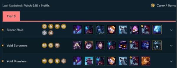 前不久的美服中英雄联盟更新至9.15版本,云顶之奕也有了不少的改动,几天过去,美服胜率排行榜上虚空斗士流位居前列,再次被列为S级阵容。在这里,小编为大家整理了三套以虚空斗士为主体的羁绊阵容,提供给玩家们上分使用,赶紧收藏下来吧!