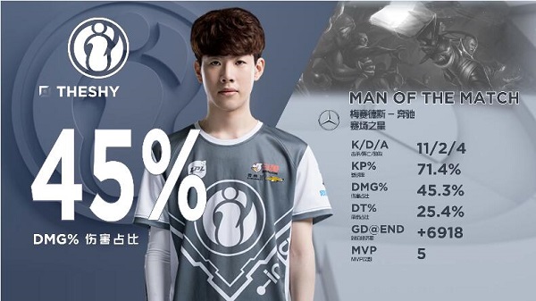 4分钟宁王上路gank帮助TS拿下ADD一血,并在草丛蹲伏一分钟成功击杀前来gank的国豪并越塔再杀ADD。8分钟ning借助优势想拿小龙,国豪强势进攻接盘土龙。9分30IG中野抓上3打2越塔击杀BLG中上两人。12分半TS野区单杀ADD船长。16分半IG四人抓下拿下国豪人头,19分钟,IG拿下第二条火龙。21分钟TS卢锡安下路越塔单杀ADD,24分半卢锡安中路E脸被EZ终结,26分钟,IG快速打大龙,被jinjiao拿下3杀,BLG团灭IG。28分30IG抱团推掉下路二塔,BLG果断反打牺牲塔姆换掉IG下路双人组。35分钟,双方长时间拉锯IG果断开龙拿下大龙并凭借卢锡安持续高额伤害打出2换3。37分钟双方远古龙长时间拉扯,IG最终拿下小龙再次打出2换3。战到40分钟,rookie中路成功击杀jinjiao,BLG失去伤害支柱被IG一波结束比赛,大比分1比1进入决赛局,本局比赛the shy的卢锡安无人能挡拿下MVP!