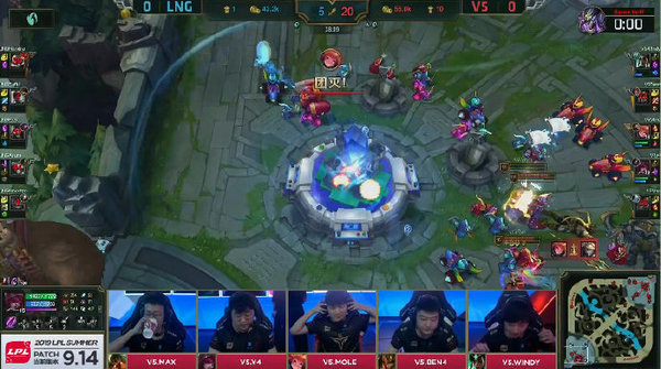 这场比赛两方打的如火如荼,尤其是双方的ADC都是使出了浑身解数来carry比赛,V5前期的节奏很好,上路塞拉斯一打二反杀,中路河道希维尔拿下三杀,也是让V5起了想动大龙的想法,但是在中期的团战中,尽管吸血鬼发育不好但是它的进场没有人能限制,V5的几次贸然进攻也是让LNG抓住机会扳平了劣势,但是在后面的几波团战V5打野ben4用皇子限制了吸血鬼的输出空间,V5也都是在团战上取得了一些优势,Y4的希维尔一度高地一打三强行退家。最后的一波团战V5灵活的指挥,利用自家兵线优势直接推家,三人妨碍LNG五人回城,最后也是在避免了团战失败的风险拿下了最终胜利。