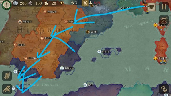 斯奇皮欧(也可以翻译成西庇阿)这几只队伍就足够打掉伊比利亚半岛了,按图推城,但是斯奇皮欧推图路线不一样,如图