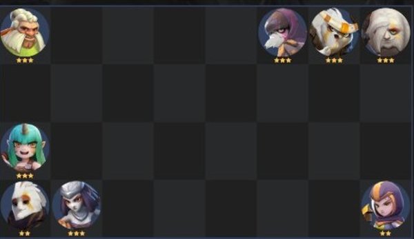 扭木和先知分摊伤害,然后禁忌猎魔人对位敌方控制,将输出远离对角,其余棋子分散,会比正常站位效果好非常多。