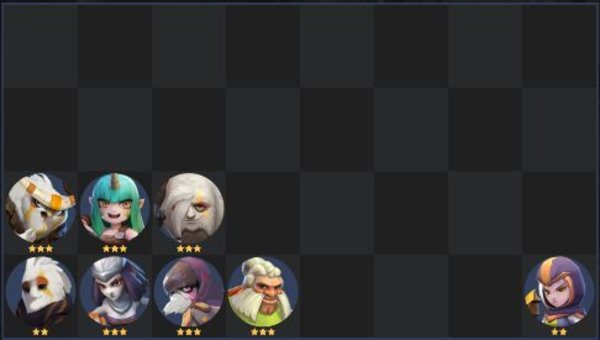 站位讲究在于和敌方成对角线,然后放养光羽斥候去吸引敌方前排棋子。