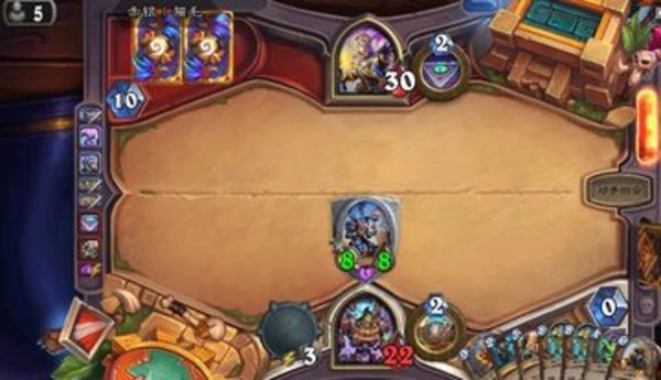2,如图,这局拖到牧师即将疲劳,对方才刚刚完成任务,但此时对方生物和解牌已经消耗殆尽,野猪otk也已被咱小光头吃进伤害,5费消灭受伤清场就ok了,此时可说对方大势已去。