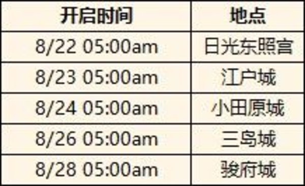 御前剑取祭总计为5章,发生在5个不同的地点。具体开放时间如下: