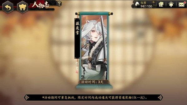 1. 活动限定角色萩岚雪(UR/SSR)、由比正雪(SSR/SR/R),在活动关卡中,伤害及治疗增加100%。