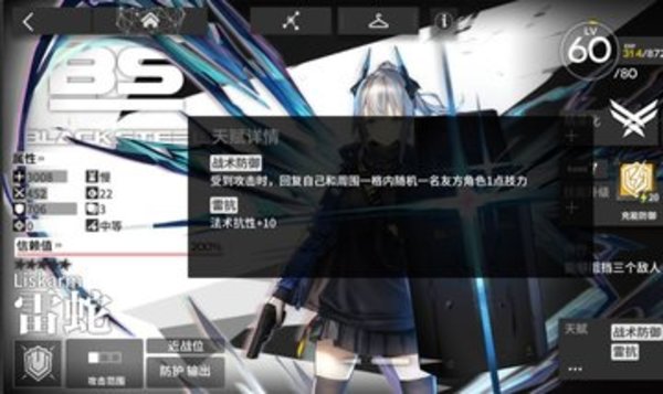 雷蛇出名的充电宝,受击回复技力,虽然写着随机增加但是能够通过人为控制让特定的干员回复技力。特别面对大量小怪时,回复技力效果卓越。