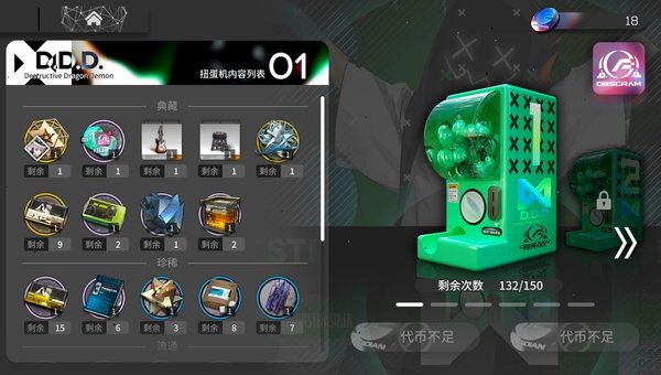 3.扭蛋机20代币一次,约为10理智,前五个池子抽干肯定有赚,第六个无限池其中70%都是蓝色,而30%中的各种黄色物资也不亏,除了币.技能书.狗粮和金条有点亏,所以可能尽可能的多抽。