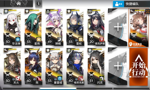 我第二次打的时候小羊技能开晚了,星熊被后面几个特工砍死了。注意先锋下场后再放羊的大招,不然羊会被晕,天火大招好就开,范围收益很大,可以换成下位远山,开大时间需注意。
