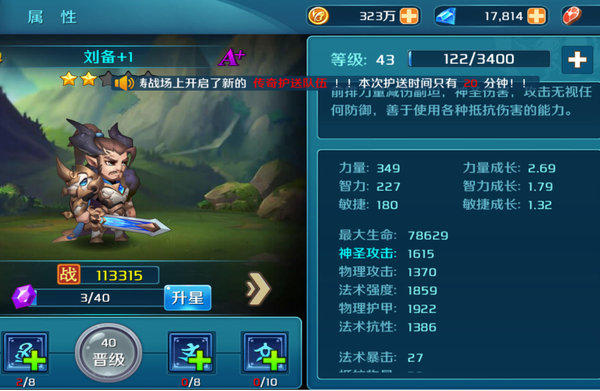 2、进游戏后就是升级成长了,这里一定强调,体力能买就都买了。不管是平民还是大佬,有体力才有等级,有体力才能晋级武将,锻造装备等,尽量买体力,体力很关键,尤其是平民,等级跟上了才会解锁新的功能,早升级就早拿资源,尤其晚一天升级就少拿一次,很重要!