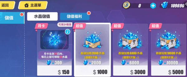 | 月卡签到 | 买就给300水晶,每天可拿到60水晶,签到15天有额外500水晶 |