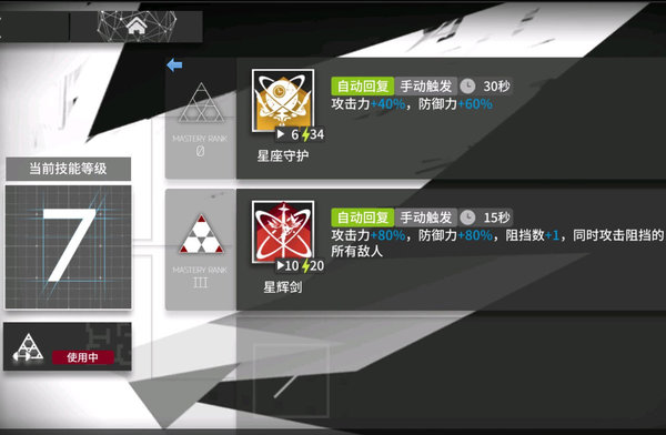 五星干员技能很多虽然没有逆天的特效,但用起来就是简单好用舒服,拉狗星极技能触发频率高起来个人感觉比真银斩爽。