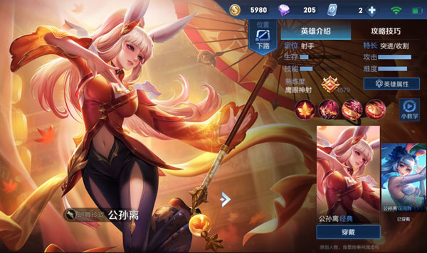 逐日之弓:加攻速暴击主动技能较短的CD可以频繁的使用,主动技能提供加速效果可以跑路也可以收割,加射程可以用于消耗收割和反杀。