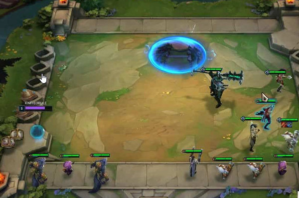 注意:这里需要注意的是,对手没有海克斯的话,建议阵容站位紧凑一点,如果是面对海克斯,建议棋子站位散开,寒冰是主C,注意对面机器人位置就好。