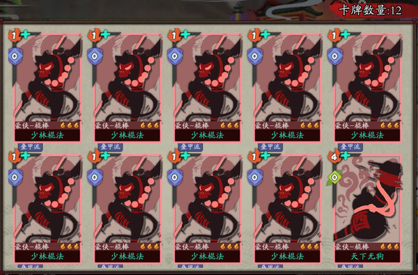 进图删卡找少林棍,并不断精简卡组,最后,成型的卡组应该是这样的: