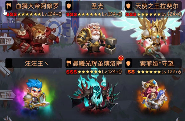 少一个锻造,速度比血狮高就行。阵容把圣光拿下,女主顶上。后排来个锻造,剩下就看脸了。血狮的三围没问题。我就是今天才15的。一切看脸。主角技能加攻击,单技能。