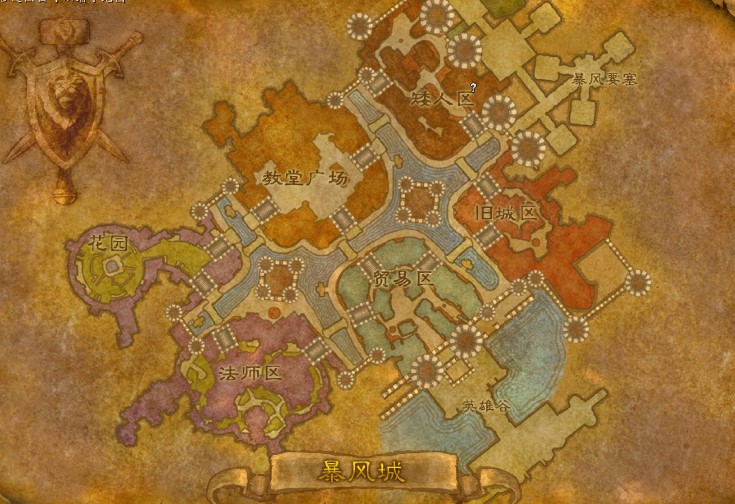 暴风城矿道地铁站位置位于矮人区的东南边,暴风要塞的北边,进入传送门就可以进入地铁站,暴风城地图如下: