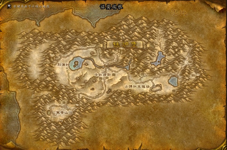 玩家想前往侏儒的前主城,就必须先到达矮人主城铁炉堡,从正门口出来后穿过卡拉诺斯,然后前往烈酒村,在烈酒村的正西方有一扇大门,那里就是诺莫瑞根副本了,门口图片和丹莫罗地图位置如下:
