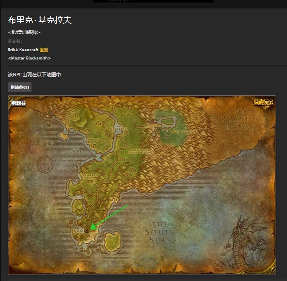 联盟部落玩家学习大师级锻造的地点相同,都是在荆棘谷藏宝海湾的布里克·基克拉夫处学习。需要锻造等级到达225以上才能学习。