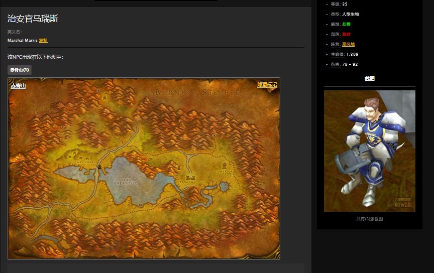 玩家首先会在治安官玛瑞斯这里接取到任务萨瑞尔祖恩任务,这是黑石氏族的威胁任务的后续,玩家需要完成后才能接取到,以下是任务要求和位置: