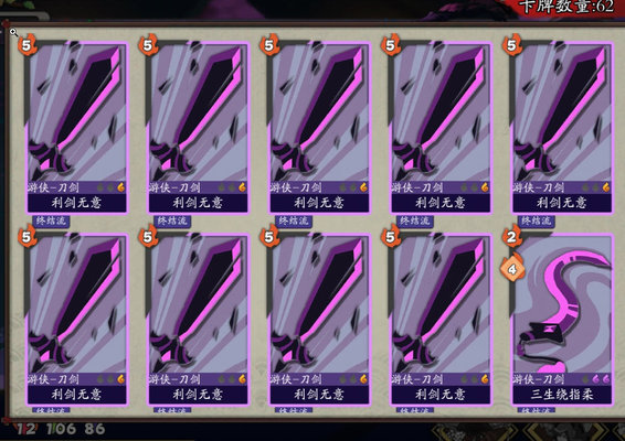 基本上必须靠弃牌刺,豪侠和气宗没有留无用橙的空间。图的话少打华山冰火岛,个人体感少林海龟多。