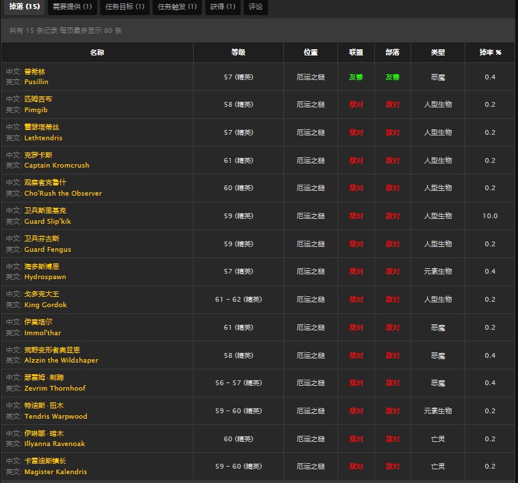 在厄运之槌中所有的boss都有概率会掉落,掉落数值如下: