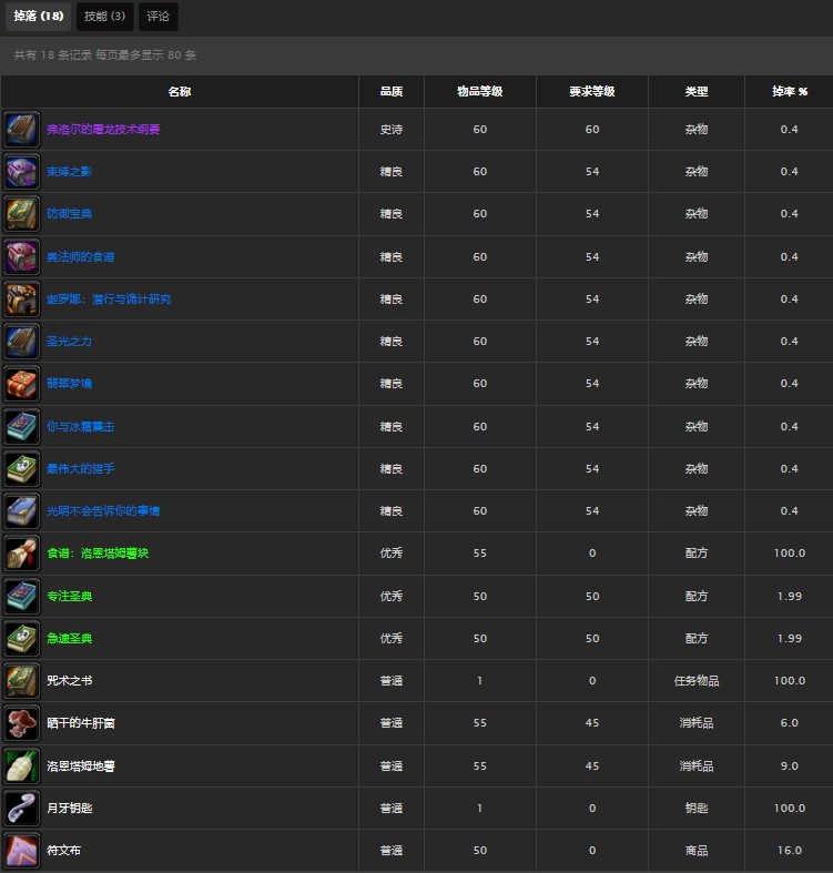 玩家击杀掉普希林会掉落各种职业的任务书,还会百分之百掉落一个薯块的烹饪书,掉落列表如下: