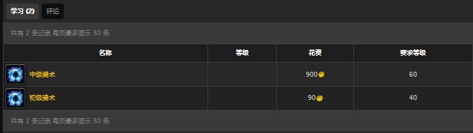 初级骑术10银币,中级骑术900银币。