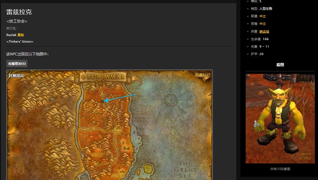 玩家可以在前往奥格瑞玛的大路上找到雷兹拉克,在他那里接取到保护商队任务。