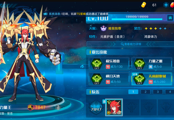 奥拉星手游中的巅峰塔87层还是比较简单的,至少比86层要简单一些,小编来讲讲自己的通关经验吧,首先就是阵容的选择,小编用的是兔子+伊撒尔+力王+夜王。这套阵容实力还是很强的,开局兔子放大牺牲,换伊撒尔上场,加一技能,有大放大。