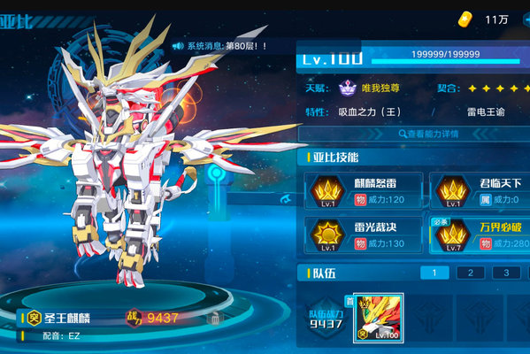 敌方修罗败后,把132换成麒麟上场,一起打白。这里说一下为什么要先打白,是因为第一把我也是先合力打的凯撒,可发现白的属性如果提升起来,打我后面的麒麟也很疼的,而且打第一把的时候运气也不好,因为凯撒会放清属的技能清除我加的各种增益!
