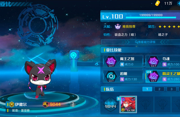 第二,我的阵容里前两只不变,我试过在可兰之后用夜王打战无炎,有伤害,奈何战无炎会放三技能回血,大概一千滴血左右,就很烦,要不然大玩家我一只可兰完全可以耗过神武月和战无炎的。