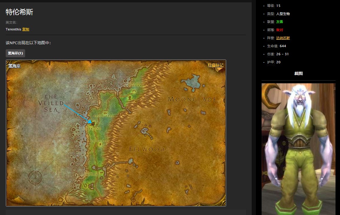 玩家可以在黑海岸奥伯丁的长老特伦希斯处接到这个任务。