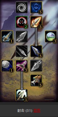 第二层夺命射击5点,提升远程暴击概率。猎人印记2点,增加远程攻强。