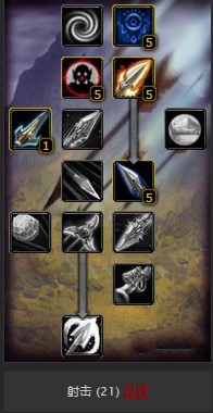 第二层夺命射击5点,提升射击暴击率。猎人印记5点,增加印记目标远程射击攻击强度。