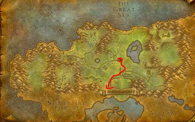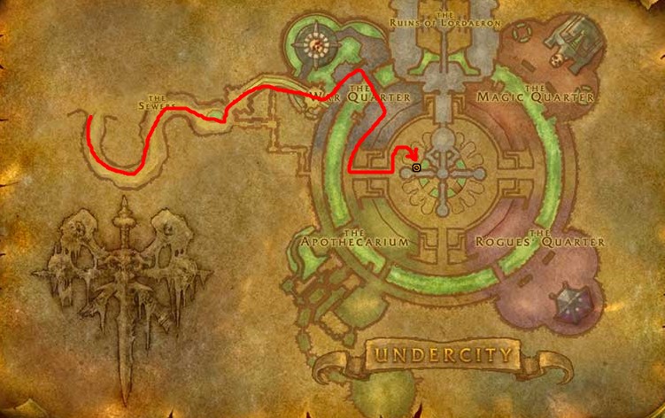 玩家可以根据以下的路线来在幽暗城找到黛丽娅的丈夫拉林夫。