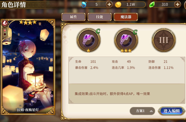 四星旗袍拉姆真滴强,魔法器附灵之戒,配上1拐1群攻,自律基本一回合清屏,对单能力也很强。推图应该是t0级的。