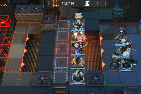 思路:先蓝毒后能天使清掉弩手,推王(放在陈的位置回费),上银灰,上杰哥拉血线,上塞妈,5个飞机一起来的时候开能天使3技能,上白面赫默,下推王上陈。