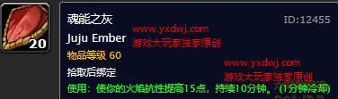 魂能之灰的能力是提升自己15点的火焰抗性,持续10分钟,冷却时间1分钟。