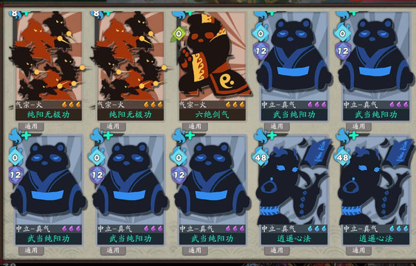 拿到两张纯阳无极,五张武当纯阳功,三张扫帚,所有怪基本都是第一回合秒了。武当纯阳并非必要。