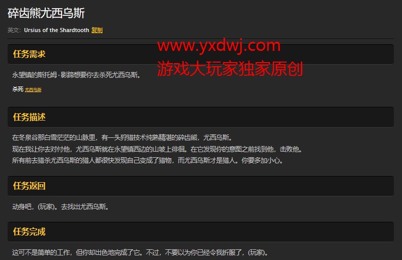 魔兽世界怀旧服部落碎齿熊尤西乌斯任务怎么做?WOW怀旧服冬泉谷尤西乌斯在哪儿?